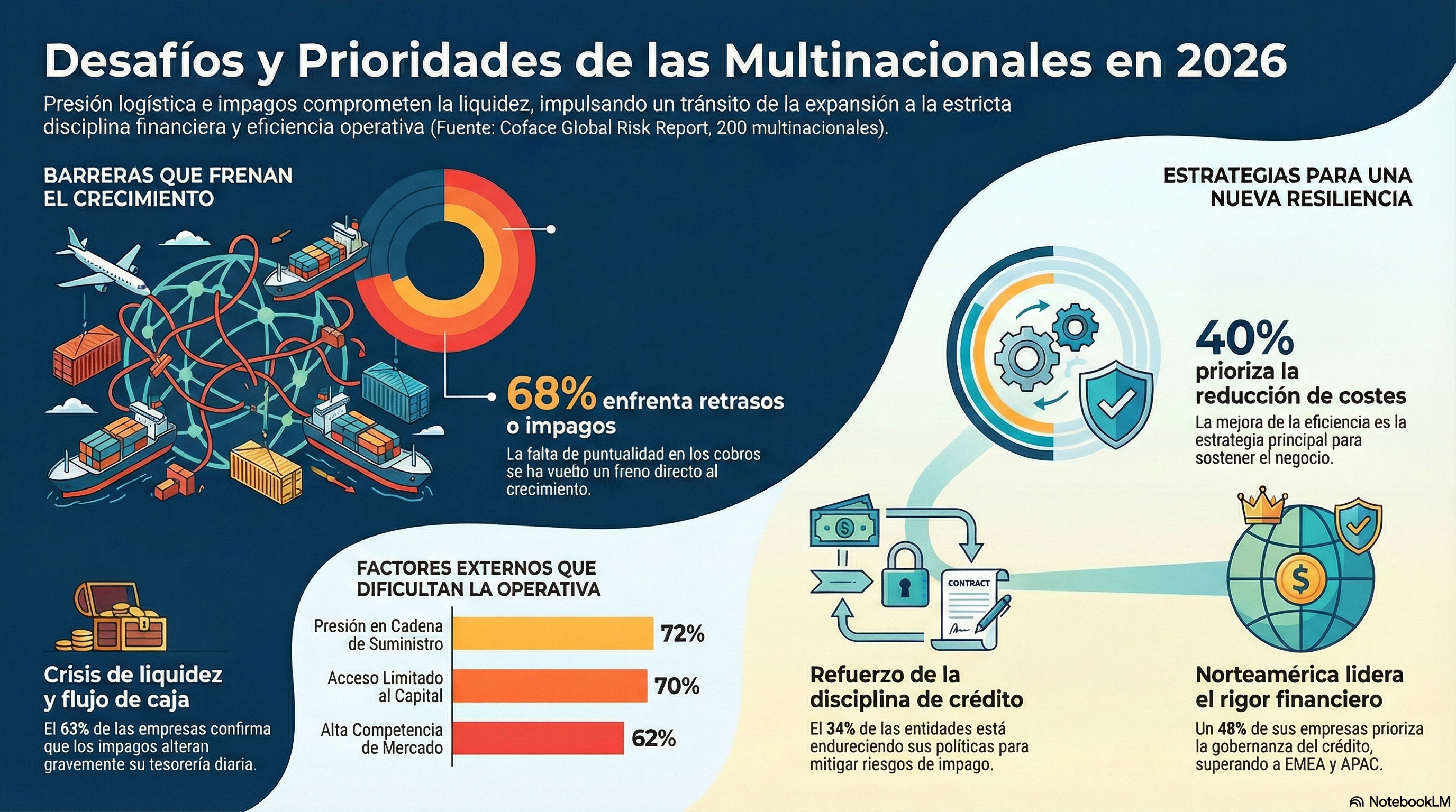 El 63% de las multinacionales señala que los retrasos en cobros alteran su flujo de caja, lo que fuerza a: